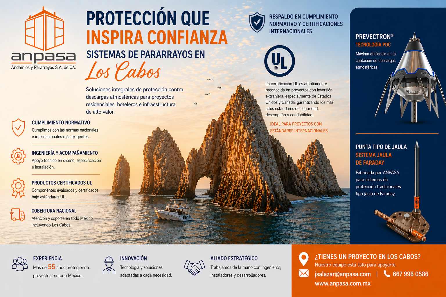 El desarrollo acelerado de proyectos residenciales premium, hoteleros e infraestructura en Los Cabos ha traído consigo mayores exigencias en materia de seguridad eléctrica y gestión de riesgos. En este contexto, la protección contra descargas atmosféricas se ha convertido en un factor clave desde las primeras etapas de diseño.